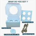 Make your cupcakes and treats shine with our Blue Cupcake Boxes with Window, available in packs of 20. Crafted from eco-friendly, food-grade cardboard, these sturdy boxes come with inserts to keep your cupcakes secure. The convenient window allows customers to showcase their delicious creations while maintaining freshness.