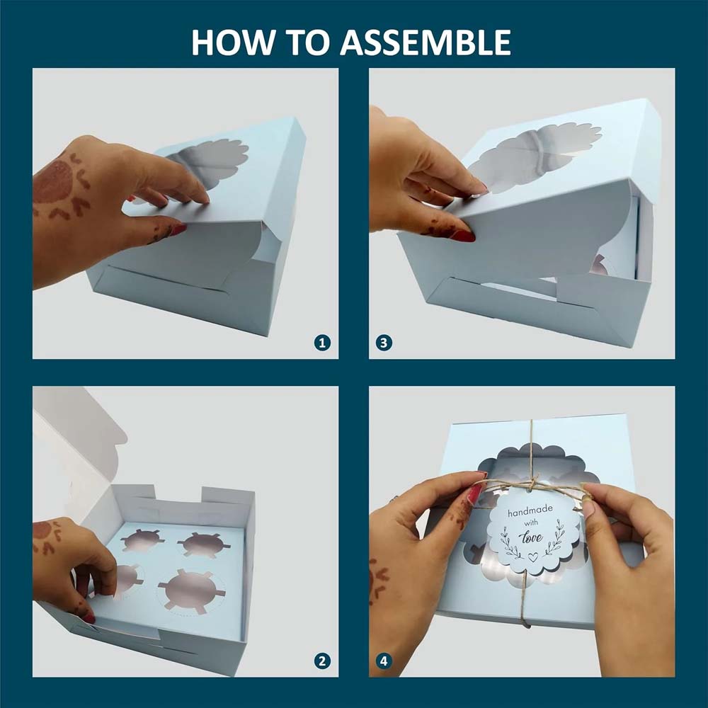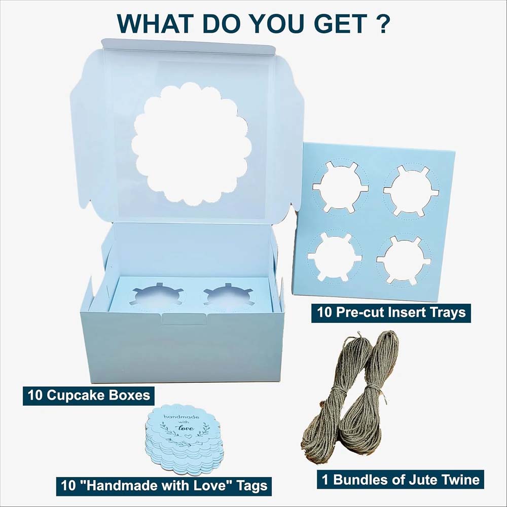 Blue Cupcake Box For 4, Pack of 10/20