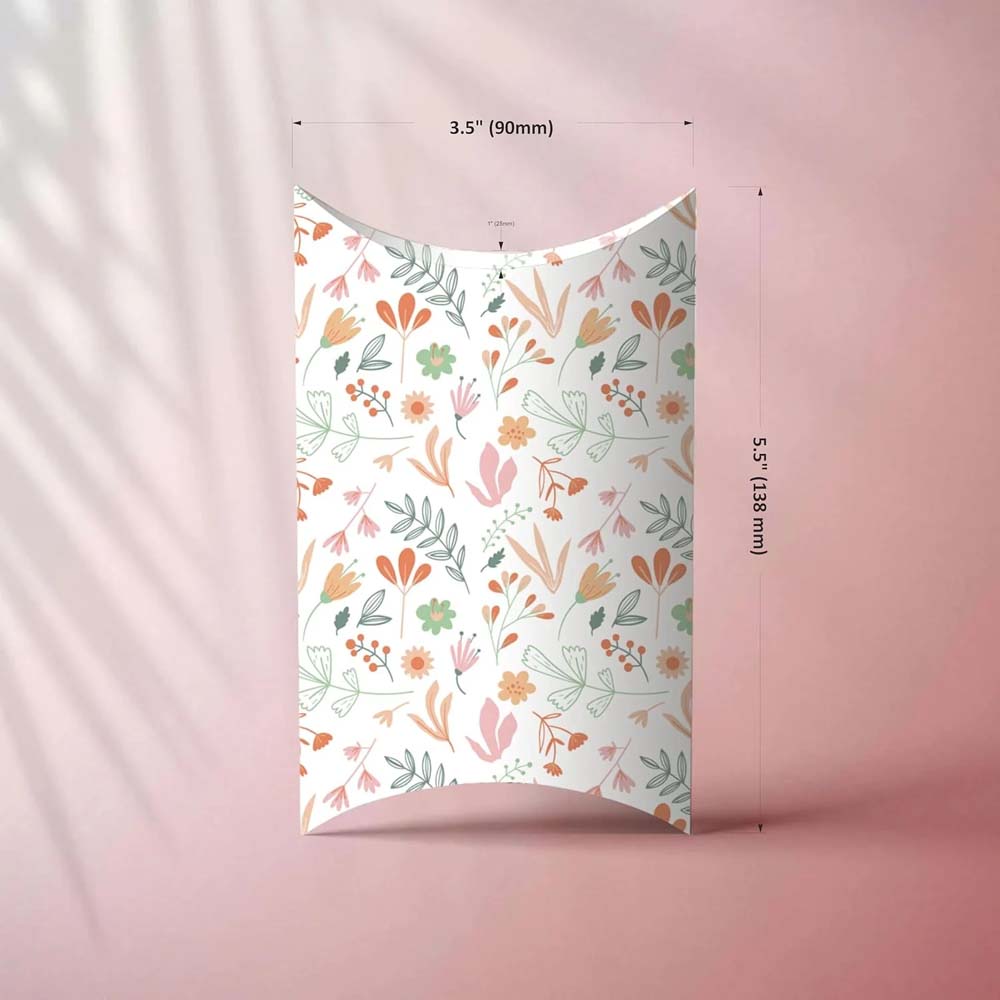Add a touch of elegance to your gifting with our Floral Pillow Paper Boxes. This set of 50 eco-friendly boxes features a subtle leaf pattern and comes with jute twine for rustic charm. Perfect for small gifts, jewelry, or party favors, they’re easy to assemble and customizable for any occasion.