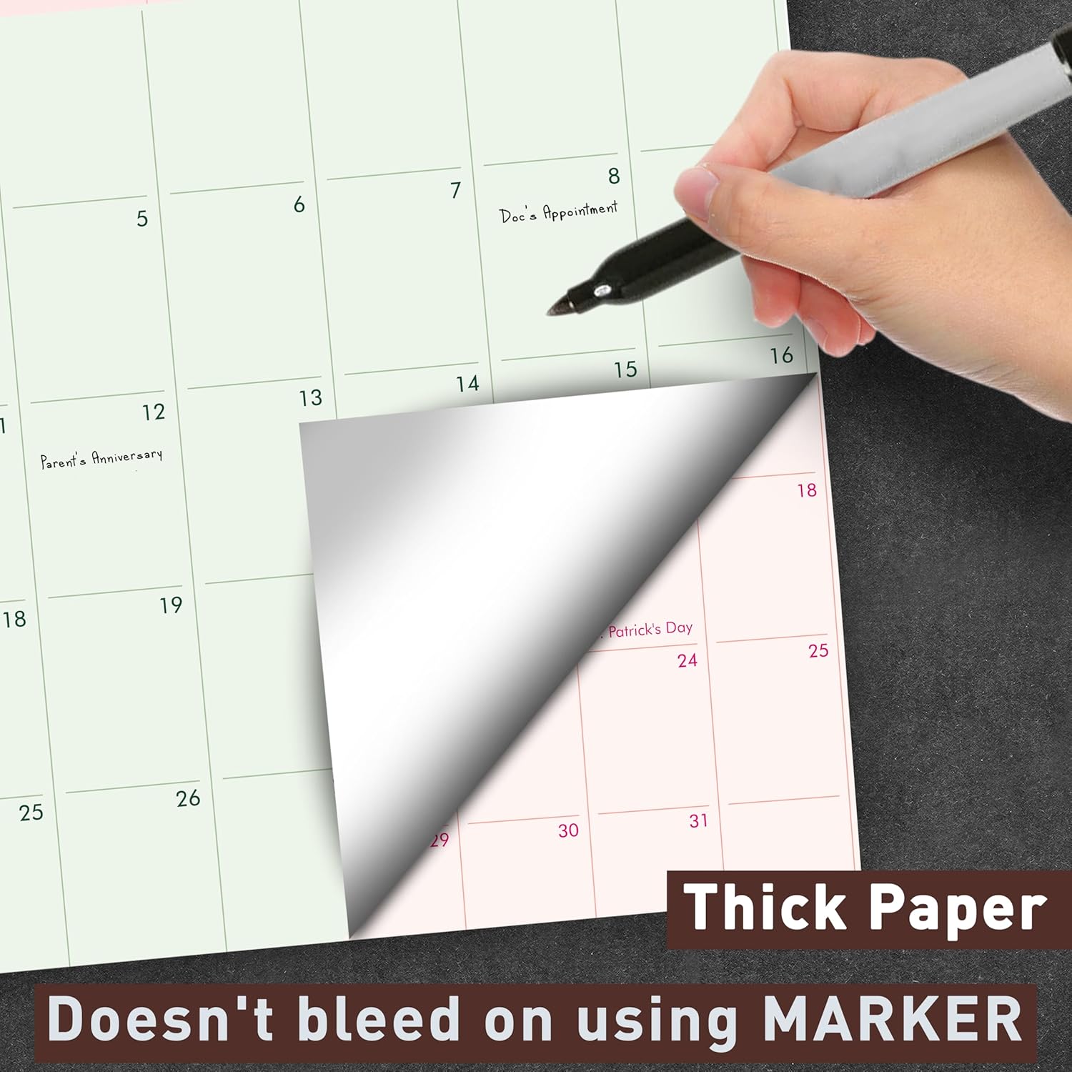 - Thick Paper : Our calendars work with markers and do not stain on the back.