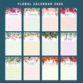 Floral Wall Calendar July 2025 - Dec 2026