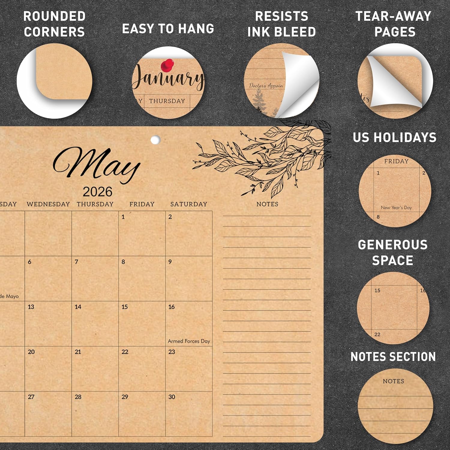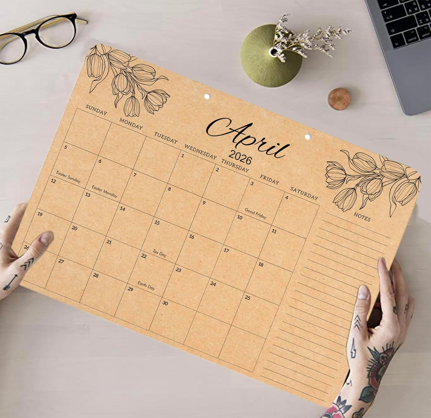 Stay organized and inspired in 2025 -2026 with this rustic kraft desk calendar. Crafted from premium 170 GSM paper, it resists smudges, perfect for marker notes. Each month features spacious, lined boxes for easy planning, plus a unique coloring pattern on the back for de-stressing moments. With rounded corners, pre-punched holes, and a versatile 12" x 17" size, this calendar fits perfectly on your desk or wall. A thoughtful gift for anyone who values productivity and style!