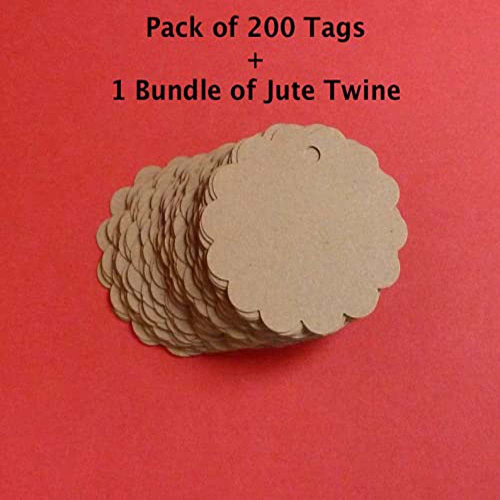 Kraft Scalloped Shaped Paper Tags with Jute Twine, Pack of 200